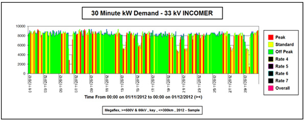 SELECTED TARIFF : Megaflex, >=500V & 66kV , key , <=300km , 2012 - Sample (30 min Demand Interval)